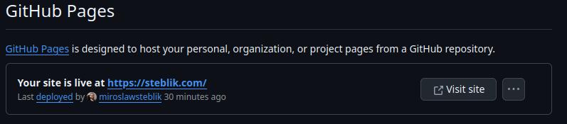 I also created a CNAME file in the static/ directory containing my domain name to complete the GitHub Pages configuration.